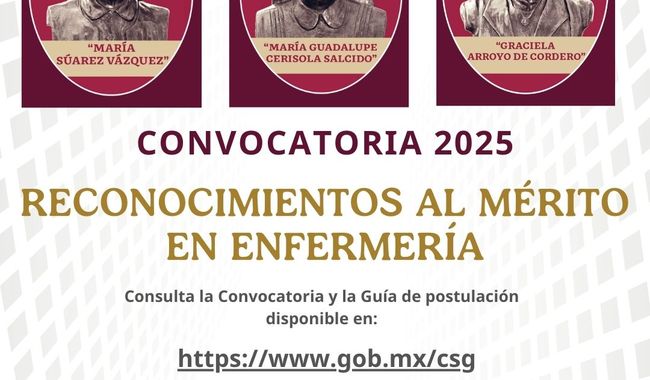 El Consejo de Salubridad General (CSG) anuncia la apertura de la convocatoria para los Reconocimientos al Mérito en Enfermería 2025, en el marco del Día Nacional de la Enfermería, con el objetivo de distinguir a profesionales que han realizado contribuciones excepcionales en el campo de la enfermería en México.