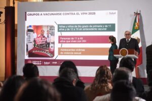 El secretario de Salud, David Kershenobich, durante la Conferencia del Pueblo, destacó los avances de la Campaña Nacional de Vacunación contra el Virus del Papiloma Humano (VPH) 2025, que busca proteger a niñas y niños de quinto grado de primaria y de 11 años no escolarizados, así como a adolescentes y personas con VIH.