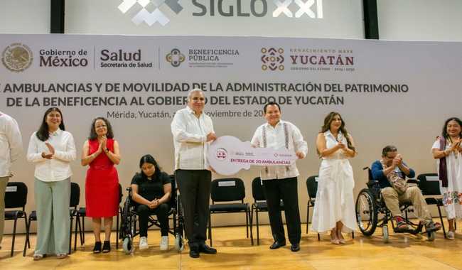 La Administración del Patrimonio de la Beneficencia Pública (APBP), de la Secretaría de Salud del Gobierno de México, entregó al gobierno del estado de Yucatán 20 ambulancias, 18 de urgencias básicas y 2 de urgencias avanzadas, con objeto de contribuir a garantizar atención pre hospitalaria oportuna y de calidad para todas y todos los yucatecos.