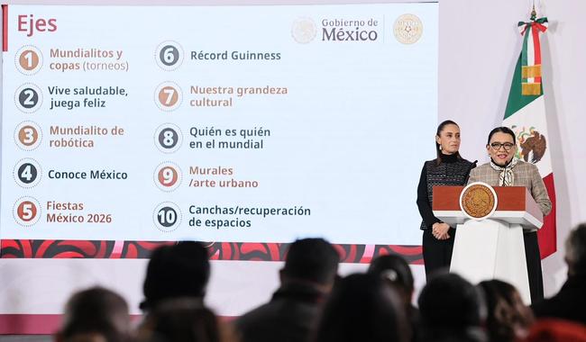 Finalmente, Rodríguez invitó a la población a sumarse a las actividades del Mundial Social México 2026, que se articula en los siguientes 10 ejes: