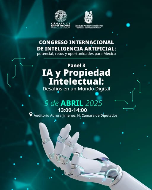 ¿A quién le pertenece lo que crea una #IA? Acompáñanos al Panel 3 del Congreso Internacional de Inteligencia Artificial que organizamos en conjunto con el Instituto Politécnico Nacional y descubre los desafíos de la propiedad intelectual.