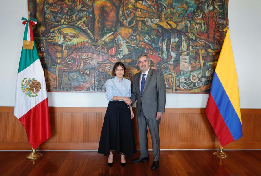 En seguimiento a los recientes encuentros y conversaciones entre la presidenta Claudia Sheinbaum y el presidente Gustavo Petro, el secretario de Relaciones Exteriores, Juan Ramón de la Fuente, y la ministra de Relaciones Exteriores de Colombia, Laura Sarabia, sostuvieron hoy una productiva reunión de trabajo para revisar la agenda bilateral y discutir iniciativas que profundicen la cooperación e integración en América Latina y el Caribe, sobre todo en el contexto global imperante.
