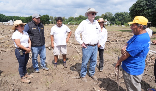 Durante el recorrido, el secretario Julio Berdegué Sacristán destacó la coordinación con la Secretaría de Desarrollo Rural del Estado de Puebla y la presencia de equipos federales en distintas zonas afectadas de Puebla y Veracruz, para avanzar en los censos productivos y en la organización de apoyos a las familias rurales.