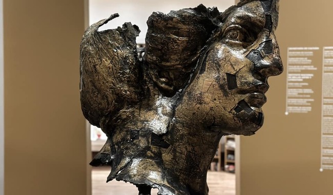 Por mencionar algunas obras destacadas de la exhibición, se puede citar la escultura en bronce La victoria alada (fragmento, 1902), de Enrique Alciati, la cual muestra a Niké: la Victoria alada, o simplemente el Ángel, alusivo al monumento más representativo de la Ciudad de México y el ícono por excelencia de la gesta independentista, mismo que fue erigido en el marco de los festejos por el centenario del movimiento armado de 1810. La madrugada del 28 de julio de 1957, un sismo de 7.8 grados Richter sacudió la capital mexicana, desprendiendo la áurea figura de más de 7 toneladas y lanzándola desde casi 40 metros de altura. Tras el episodio, la columna se reforzó y su victoriosa Niké, una vez restaurada, fue colocada nuevamente en su emplazamiento original. La cabeza, como testimonio de aquel desafortunado suceso natural, se resguarda desde entonces en el Archivo Histórico de la Ciudad de México.