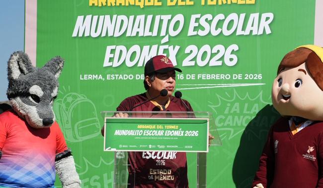 Con la presencia de equipos de bachillerato del Estado de México, reunidos en el Colegio Nacional de Educación Profesional Técnica (Conalep), plantel Lerma, Delgado Carrillo exhortó a las y los estudiantes de Educación Básica y Media Superior de todo el país a inscribir a su equipo en la página oficial del Mundialito Escolar 2026, al afirmar que no hay futbolista que no haya empezado en el patio de su escuela, en la calle, en su barrio o en su colonia.