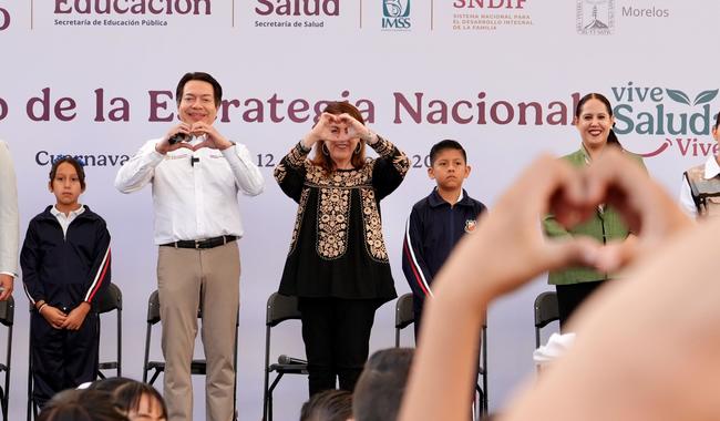 La gobernadora Margarita González Saravia agradeció a la mandataria federal por haber elegido a Morelos como una de las sedes para el arranque de la estrategia nacional «Vive saludable, vive feliz» y destacó que niñas, niños, madres, padres, familias, maestras y maestros están comprometidos con el programa.