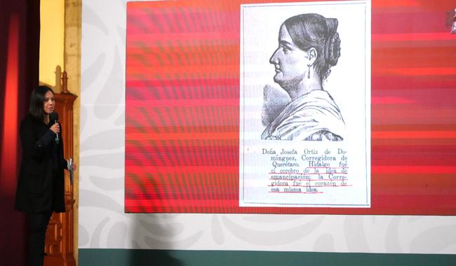 Para eliminar los estereotipos sobre la intervención de las mujeres en los hechos históricos del país, y como parte de la sección “Mujeres en la historia”, durante la “Mañanera del Pueblo” que encabeza la Presidenta de México, Claudia Sheinbaum Pardo, la subsecretaria de Educación Básica, Angélica Noemí Juárez Pérez, presentó un video sobre Josefa Ortiz Téllez Girón y su participación en la lucha de Independencia.