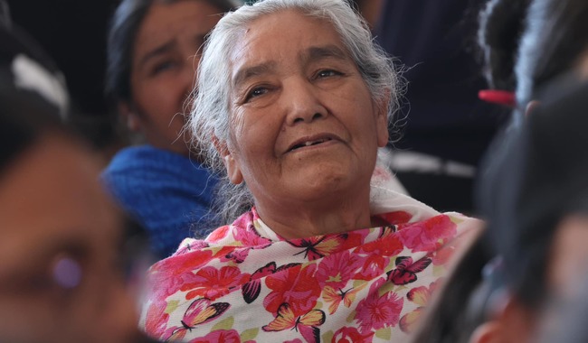 Fotografía de una asistente al evento de entrega de Tarjetas de la Pensión Mujeres Bienestar en Chinantla, Puebla, 19 de enero de 2025.