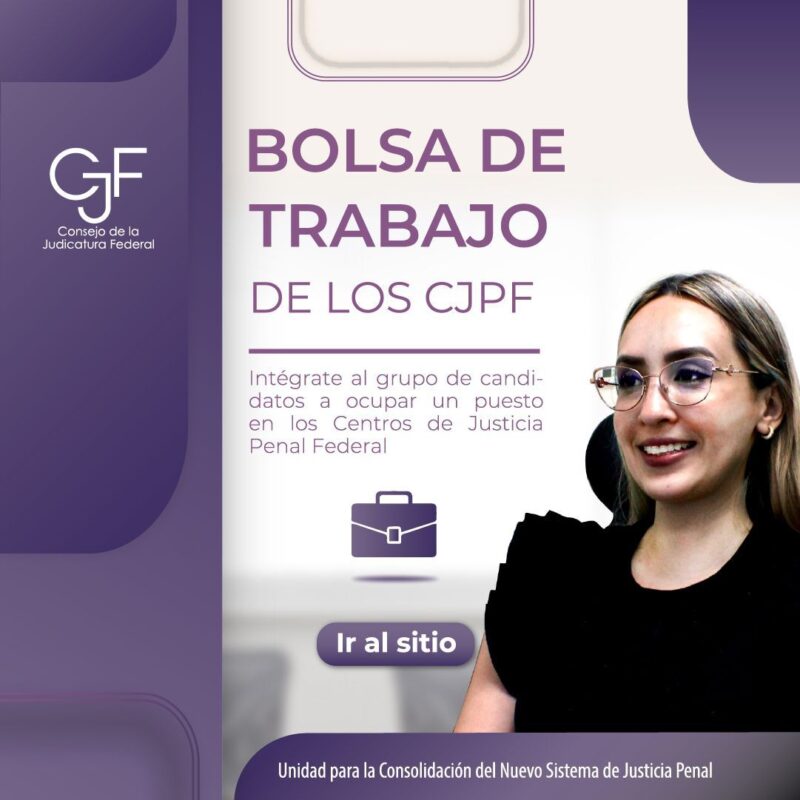 #BolsaDeTrabajo | ¡Te estamos buscando! Postúlate como candidata o candidato para ocupar un puesto en alguno de los Centros de Justicia Penal Federal #SomosCJF