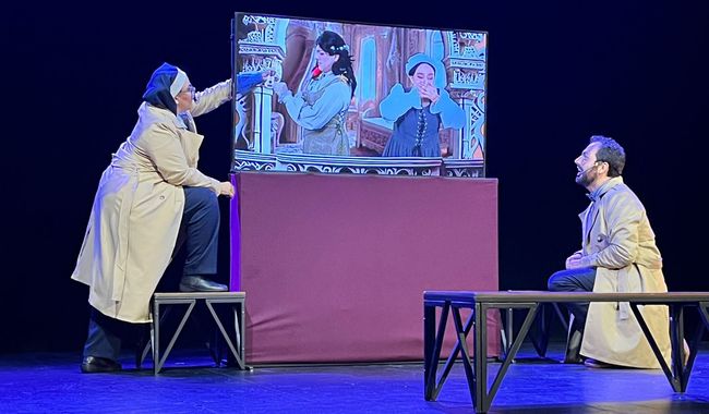 Así surgió Falsa conferencia de “La firmeza en el ausencia”: una mezcla de conferencia y teatro donde los personajes, sor Marcela de san Félix y el académico Felipe Vistahermosa (interpretados por Paola Izquierdo y Fernando Villa), tratan de explicar la obra, pero terminan actuándola porque el “video de apoyo” está incompleto.