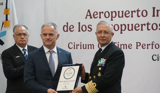 En su oportunidad, el CEO de Cirium, Jeremy Bowen, hizo entrega oficial del reconocimiento al Almirante Francisco Guillermo Escamilla Cázares, Oficial Mayor de Marina, en representación del Almirante Raymundo Pedro Morales Ángeles, Secretario de Marina, al AICM, como la terminal aérea que en 2024 registró una puntualidad del 84.04%, cifra que se determina contemplando a los vuelos que salieron a tiempo o dentro de los 15 minutos antes o después de su hora programada.