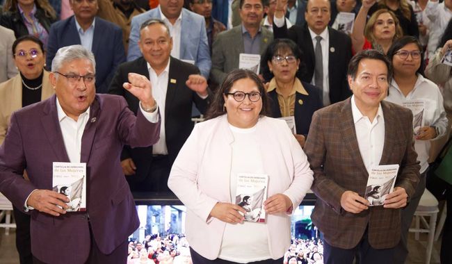 - La secretaria de las Mujeres agradeció el apoyo del SNTE para imprimir un millón de Cartillas de Derechos de las Mujeres. “Sé que ustedes replicarán fuertemente este mensaje de igualdad y promoverán esta Cartilla”, dijo