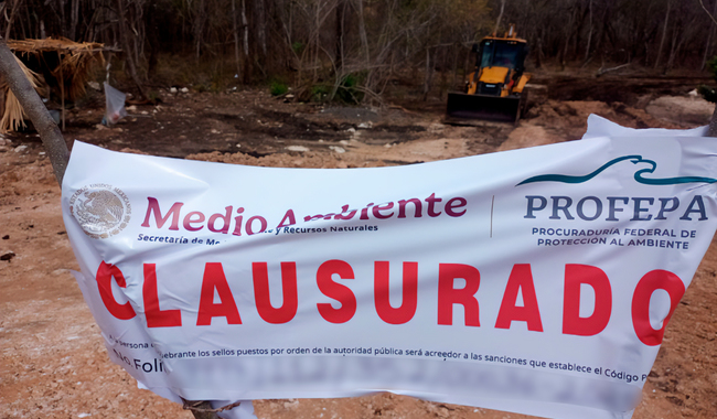 Durante una visita de inspección el pasado 19 de junio, personal de la Profepa observó la devastación de vegetación arbórea de selva mediana subperennifolia. Además, no presentaron algún documento expedido por la Semarnat que ampare las actividades realizadas, por lo que se impuso como medida de seguridad la clausura total temporal de todas las actividades en el terreno.