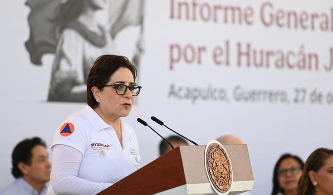 Durante la conferencia de prensa encabezada por la Presidenta Claudia Sheinbaum Pardo, la titular de la Coordinación Nacional de Protección Civil (CNPC), Laura Velázquez Alzúa, de la Secretaría de Seguridad y Protección Ciudadana (SSPC), participó junto con autoridades de los tres órdenes de gobierno, quienes presentaron un balance de las acciones emprendidas en Guerrero y Oaxaca antes, durante y después del paso del huracán John, de categoría 3.