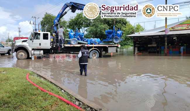 * Se instalan equipos de bombeo en zonas anegadas; se retiran árboles, espectaculares y material de arrastre de vialidades