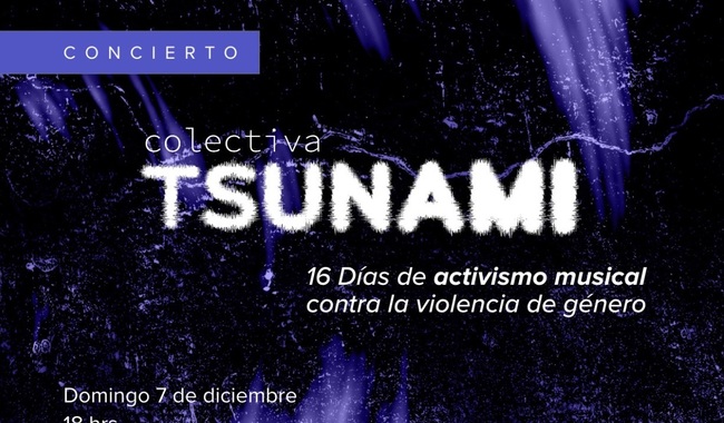 La Secretaría de Cultura del Gobierno de México y el Instituto Nacional de Bellas Artes y Literatura (INBAL), a través de la Coordinación Nacional de Música y Ópera, presentarán el recital de Colectiva Tsunami el domingo 7 de diciembre a las 18 horas en la Sala Manuel M. Ponce del Palacio de Bellas Artes, con el cual concluye el ciclo de 16 días de activismo contra la violencia de género.