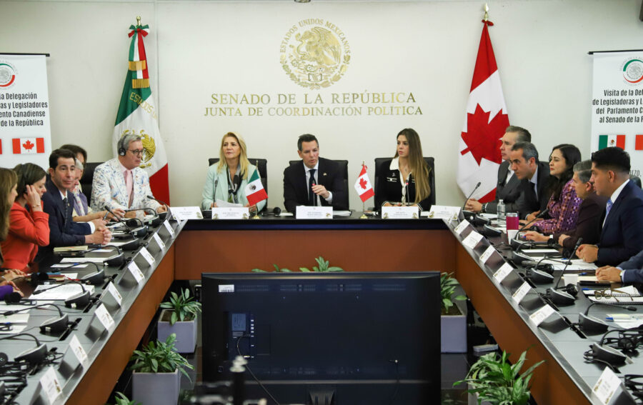 Las comisiones de Relaciones Exteriores y de Relaciones Exteriores América del Norte, que presiden el senador Alejandro Murat Hinojosa y la senadora Ruth González Silva, respectivamente, recibieron a una delegación del Parlamento Canadiense, con quienes dialogaron en torno a la próxima revisión del T-MEC, sobre turismo, intercambio cultural, seguridad y otros desafíos para la región.