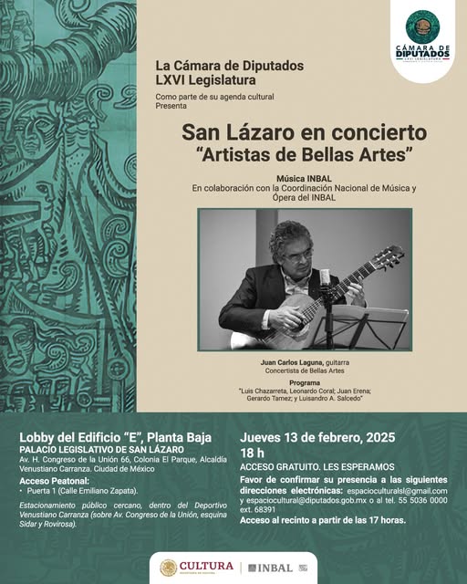 Como parte de nuestra agenda cultura, te invitamos a San Lázaro en Concierto “Artistas de Bellas Artes”. @ECSL_Diputados