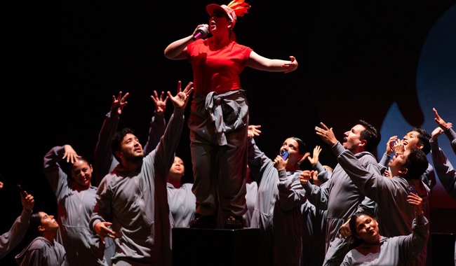 La escenografía de Matías Otálora y el vestuario de Joanna Nogueiras Yankelevich trasladaron la ópera al presente: emojis que flotan en pantallas, teclas de computadora convertidas en escenografía y efectos visuales que conectan con la cultura digital actual. Todo enmarcado por la iluminación poética de Roberto López‑Rodríguez, que acentuó las transiciones emocionales del relato.