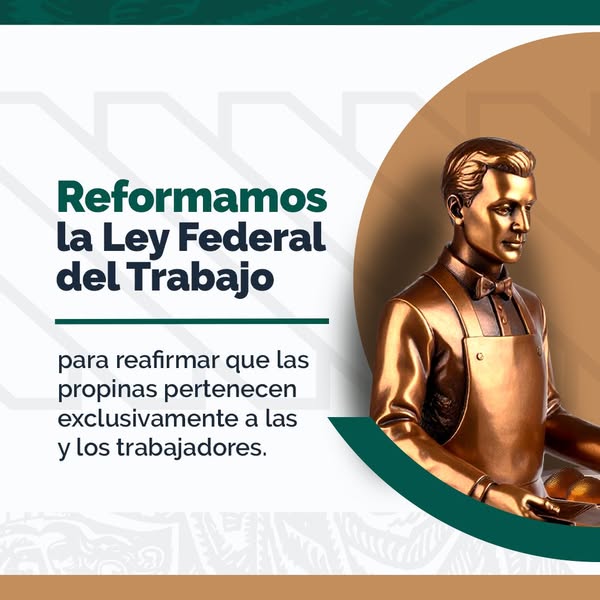 Con la reforma que aprobamos a la Ley Federal del Trabajo reafirmamos que las propinas le pertenecen exclusivamente a las y los trabajadores y su distribución deberá realizarse en función del trabajo de cada persona. Estamos más cerca de que sea ley.