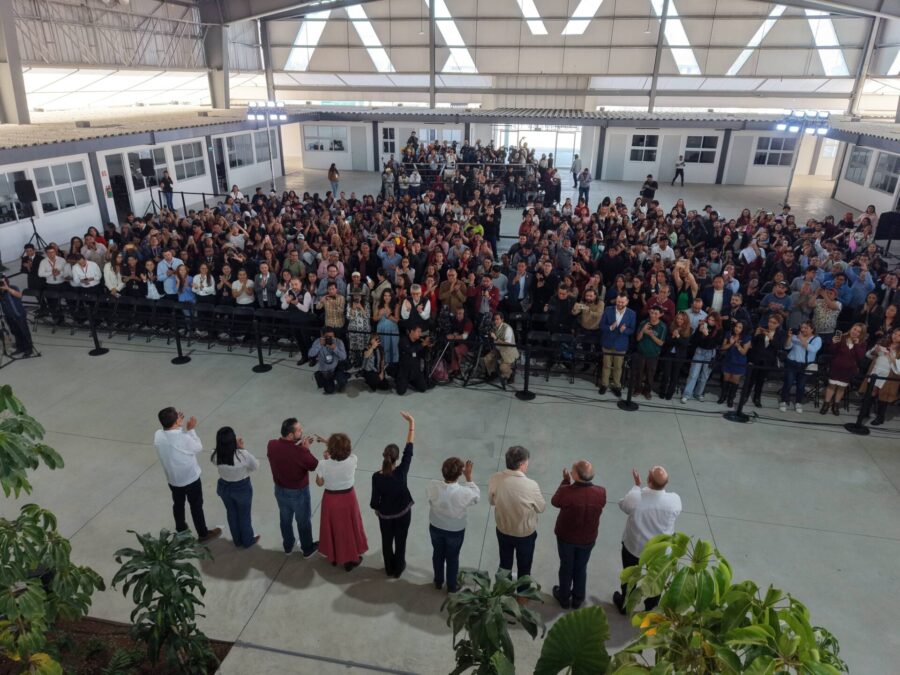 Ante más de 500 estudiantes y docentes, la Presidenta Claudia Sheinbaum Pardo, la secretaria de Ciencia, Humanidades, Tecnología e Innovación (Secihti), Rosaura Ruiz Gutiérrez, el secretario de Educación Pública (SEP), Mario Delgado Carrillo y la gobernadora del Estado de México, Delfina Gómez, encabezaron el evento.