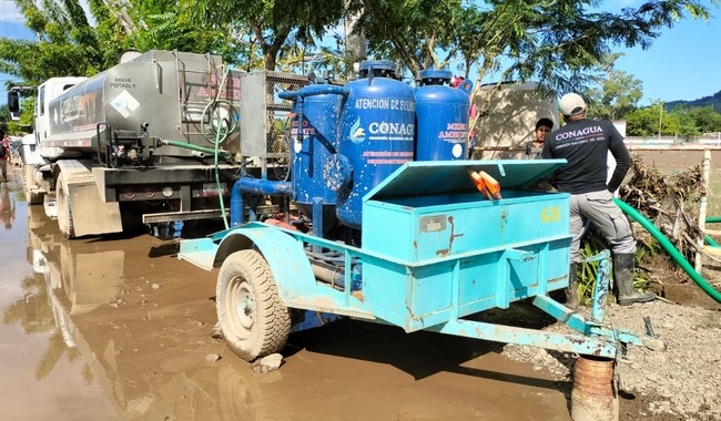 Actualmente, 37 elementos especializados de la Conagua se encuentran brindado apoyo en diversas localidades de Veracruz desde el traslado y evacuación de personas, hasta la instalación de equipos de bombeo, remoción de escombros y el abastecimiento de agua a la población afectada mediante plantas purificadoras y potabilizadoras.