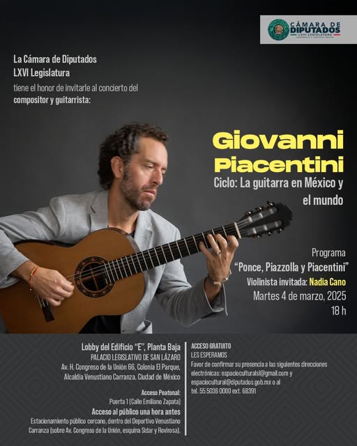 Inicio Camara de Diputados Infografías #ConciertoGratis | Acompáñanos en el concierto del guitarrista mexicano: Giovanni Piacentini.