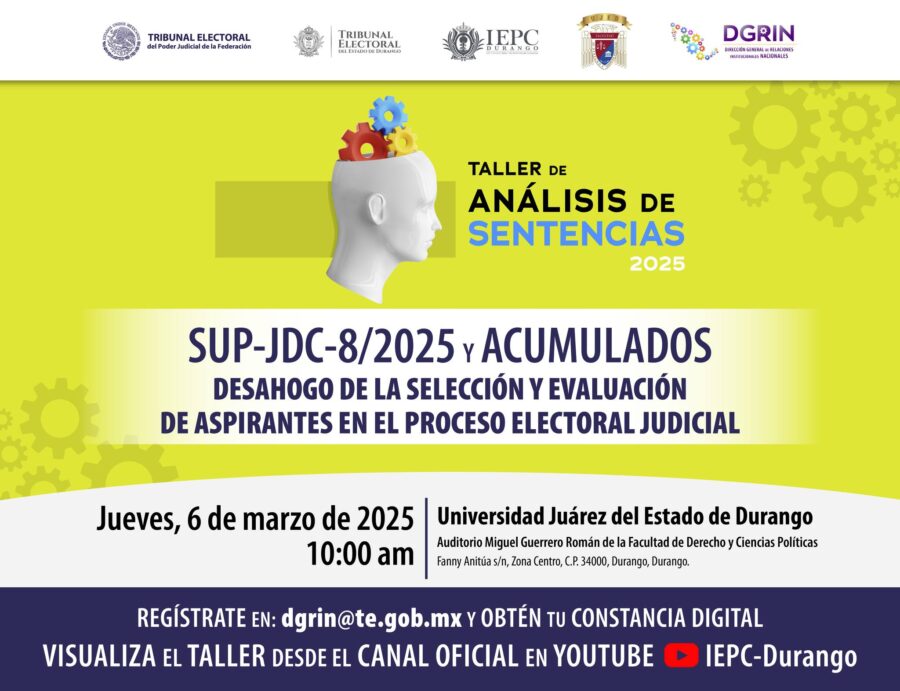 Inicio Tribunal Electoral del Poder Judicial de la Federación Infografías Conéctate al Taller de Análisis de Sentencias, en la Universidad Juárez del...