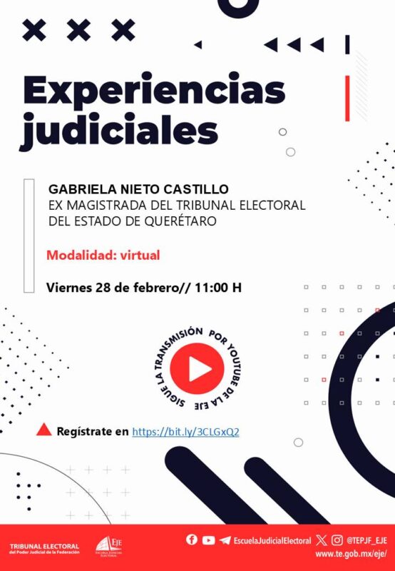 Tribunal Electoral del Poder Judicial de la FederaciónInfografías Conoce la trayectoria de una jurista destacada Este 28 de febrero a las 11:00, Gabriela Nieto Castillo, Exmagistrada del TEEQ, nos comparte su experiencia en #ExperienciasJudiciales. Por Araceli Bastida - febrero 28, 2025 0 FacebookTwitterPinterestLinkedinReddItEmailWhatsAppTelegramVK