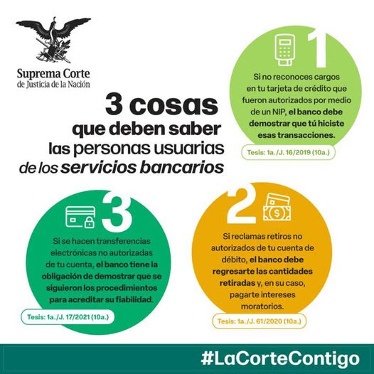 Conoce tres derechos que tienen las personas usuarias de servicios bancarios. #LaCorteContigo #EsSentencia