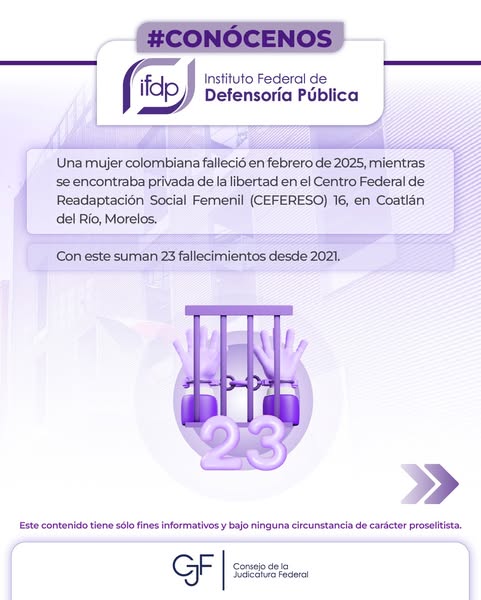 Consejo de la Judicatura FederalInfografías #Conócenos | El #IFDP emitió un pronunciamiento respecto al fallecimiento de una mujer extranjera en el CEFERESO No. 16. Por Araceli Bastida - abril 23, 2025 0 FacebookTwitterPinterestLinkedinReddItEmailWhatsAppTelegramVK