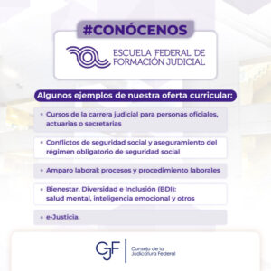 Consejo de la Judicatura FederalInfografías #Conócenos | La Escuela Federal de Formación Judicial tiene una amplia oferta educativa para personal del #PJF y público en general Por Araceli Bastida - marzo 3, 2025 0 FacebookTwitterPinterestLinkedinReddItEmailWhatsAppTelegramVK