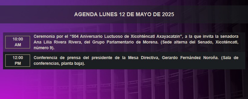 Consulta la agenda de #HoyEnElSenado.