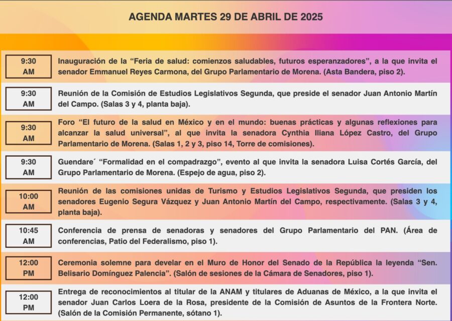 Consulta la agenda de #HoyEnElSenado.