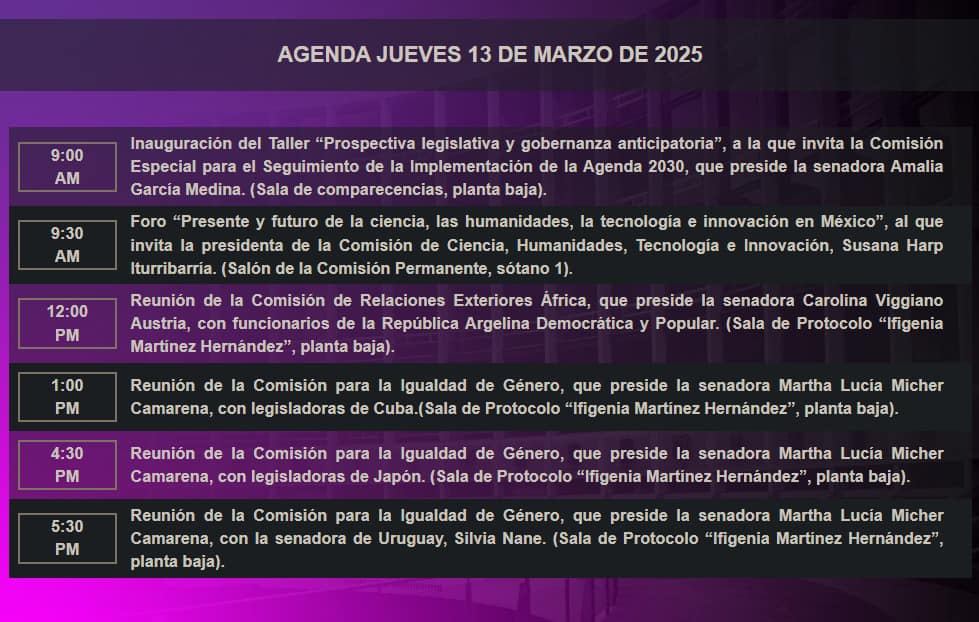Senado de la RepublicaInfografías Consulta la agenda de #HoyEnElSenado. Por Araceli Bastida - marzo 13, 2025 0 FacebookTwitterPinterestLinkedinReddItEmailWhatsAppTelegramVK
