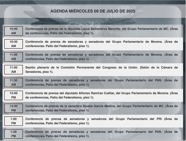 Senado de la RepublicaInfografías Consulta la agenda de #HoyEnElSenado. Por Araceli Bastida - julio 9, 2025 0 FacebookTwitterPinterestLinkedinReddItEmailWhatsAppTelegramVK