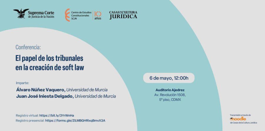 Suprema Corte de Justicia de la NaciónInfografías ¿Cuál es el papel de los tribunales en la creación de soft law? Álvaro Núñez y Juan José Iniesta conversarán al respecto en esta Conferencia organizada por el Centro de Estudios Constitucionales y Casas de la Cultura Jurídica, SCJN. Por Araceli Bastida - mayo 4, 2025 0 FacebookTwitterPinterestLinkedinReddItEmailWhatsAppTelegramVK