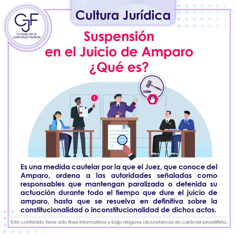 Consejo de la Judicatura FederalInfografías #CulturaJurídica | ¿Qué es una suspensión en el Juicio de Amparo? Por Araceli Bastida - abril 14, 2025 0 FacebookTwitterPinterestLinkedinReddItEmailWhatsAppTelegramVK