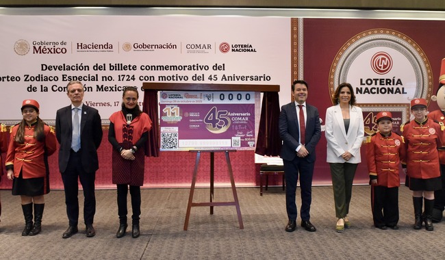 La Secretaría de Gobernación (Segob) y la Lotería Nacional celebran el 45° Aniversario de la Comisión Mexicana de Ayuda a Refugiados (Comar), con el billete del Sorteo Zodiaco Especial No. 1724.