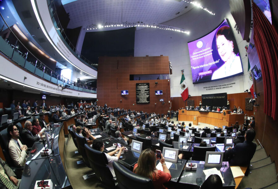 En el Senado de la República fue develado, en el Muro de Honor, el nombre de Ifigenia Martínez Hernández, en letras doradas y en reconocimiento a la contribución de la maestra, política y pionera a la lucha por las causas sociales y la construcción de una nación más democrática.