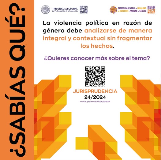 #DíaNaranja Te invitamos a consultar la Jurisprudencia 24/2024 relativa al análisis que deben realizar las autoridades electorales para constatar si se actualiza o no la violencia política en razón de género.