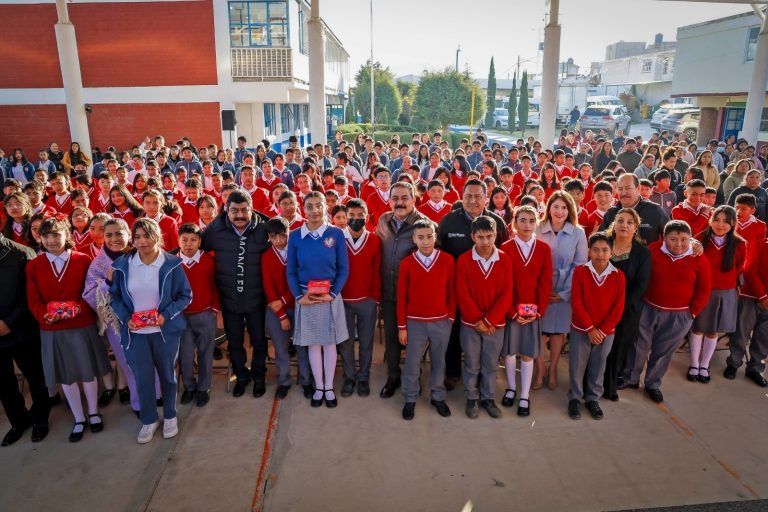 Miguel Ángel Hernández Espejel, titular de la SECTI encabezó una entrega simbólica de estos paquetes en la Escuela Secundaria Técnica Industrial No. 40 “Lic. Adolfo López Mateos”, ubicada en San Jerónimo Amanalco, una comunidad perteneciente al municipio de Texcoco.