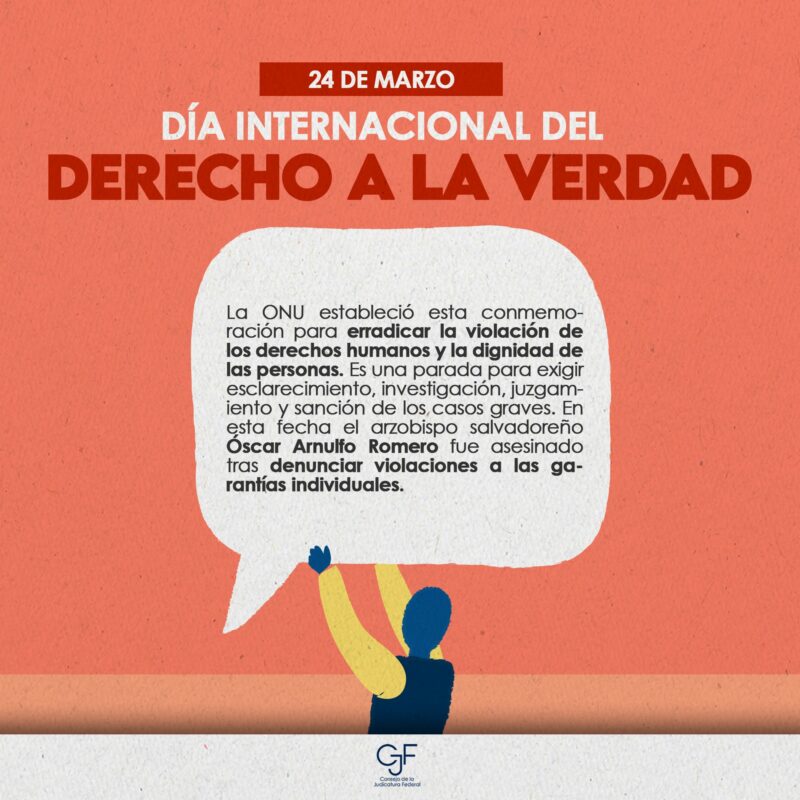 Consejo de la Judicatura FederalInfografías #EfeméridesCJF | Te compartimos un precedente de la Primera Sala de la #SCJN con motivo del Día Internacional del Derecho a la Verdad en relación con Violaciones Graves de los Derechos Humanos y de la Dignidad de las Víctimas. Por Araceli Bastida - marzo 24, 2025 0 FacebookTwitterPinterestLinkedinReddItEmailWhatsAppTelegramVK