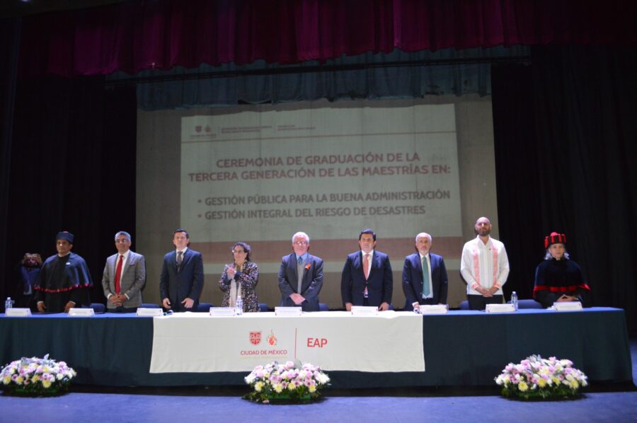 Fue en el Teatro de la Juventud donde se llevó a cabo esta ceremonia de graduación de la tercera generación de las maestrías en “Gestión Pública para la Buena Administración” (GPBA) y en “Gestión Integral del Riesgo de Desastres” (GIRD).