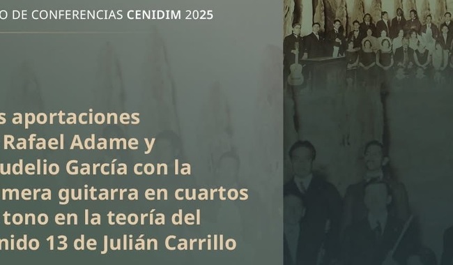 Las aportaciones de Rafael Adame y Baudelio García con la primera guitarra en cuartos de tono en la teoría del Sonido 13 de Julián Carrillo es el título de la conferencia que presentará el Centro Nacional de Investigación, Documentación e Información Musical Carlos Chávez (CENIDIM), el 22 de agosto a las 13 horas, a través de su canal de YouTube.