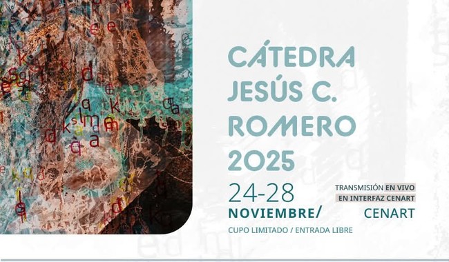 El Instituto Nacional de Bellas Artes y Literatura (INBAL), a través del Centro Nacional de Investigación, Documentación e Información Musical “Carlos Chávez” (CENIDIM), de la Subdirección General de Educación e Investigación Artísticas (SGEIA), anuncia la vigesimonovena edición de la Cátedra Jesús C. Romero 2025: Reciclar, Crear, Mover y Narrar: Investigación Crítica de la Música, que se llevará a cabo del 24 al 28 de noviembre, con acceso gratuito y transmisión en vivo por el canal de YouTube del Centro y por Interfaz CENART.