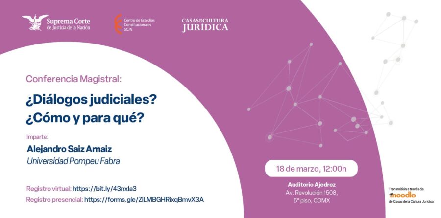 El Centro de Estudios Constitucionales y Casas de la Cultura Jurídica, SCJN reciben al Dr. Alejandro Saiz Arnaiz para reflexionar sobre los diálogos judiciales. ¡Participa!