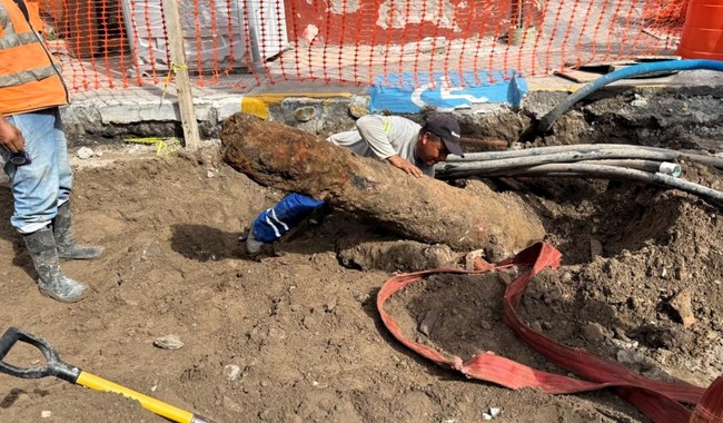 El primer cañón, detalló, fue localizado el 12 de junio de 2025, entre las calles Independencia y Juárez; mide 2.03 metros de largo, pesa 750 kilogramos y corresponde a un calibre “de a 6 pies” o 201.16 centímetros. Es probable que se trate de un arma originalmente empleada para servicio en barcos de correo, pero que, en algún momento, fue adaptada de la cureña (base de madera) para usarse en tierra.