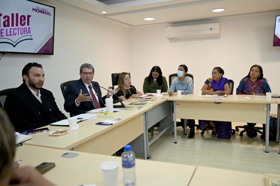 • Ricardo Monreal Ávila, coordinador del grupo parlamentario de Morena y presidente de la Jucopo, afirma que la intención del taller de lectura es “concatenar lo que los libros expresan con la realidad”
