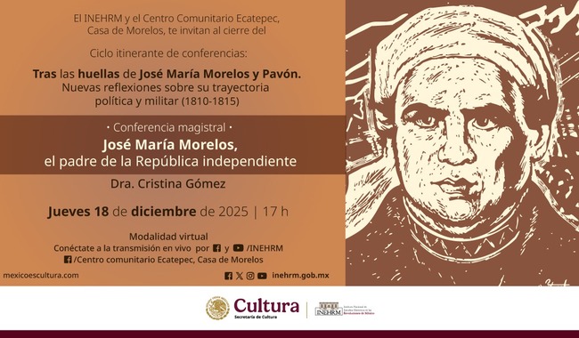En colaboración con la Casa Morelos y el Centro Comunitario de Ecatepec, la cátedra extraordinaria será virtual por Facebook (/inehrm.fanpage) y (/casademorelos) y YouTube (Canal INEHRM) el jueves 18 de diciembre a las 17 horas: gratuita, con chat abierto para todo público.